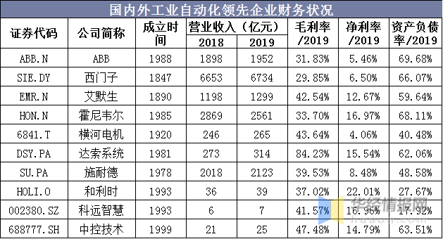 國內外工業自動化領先企業財務狀況
